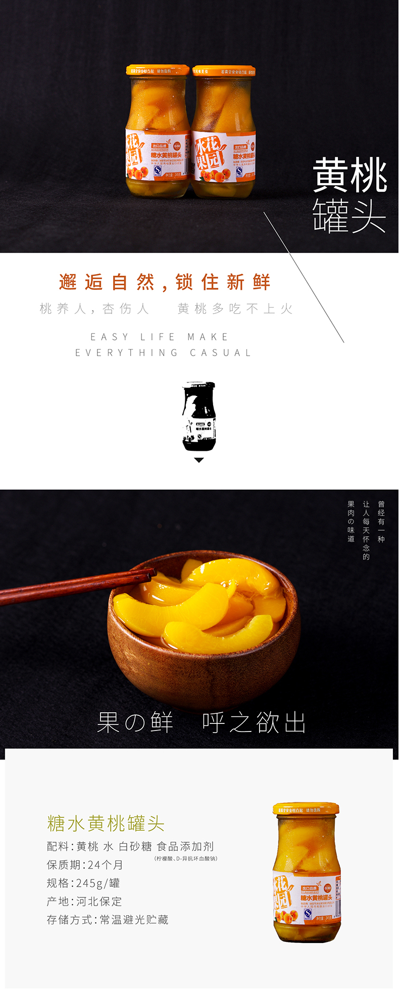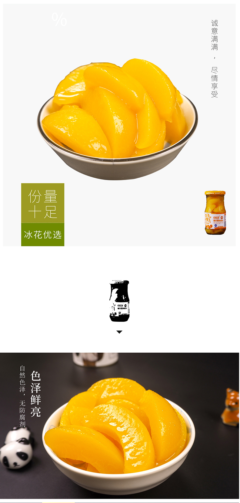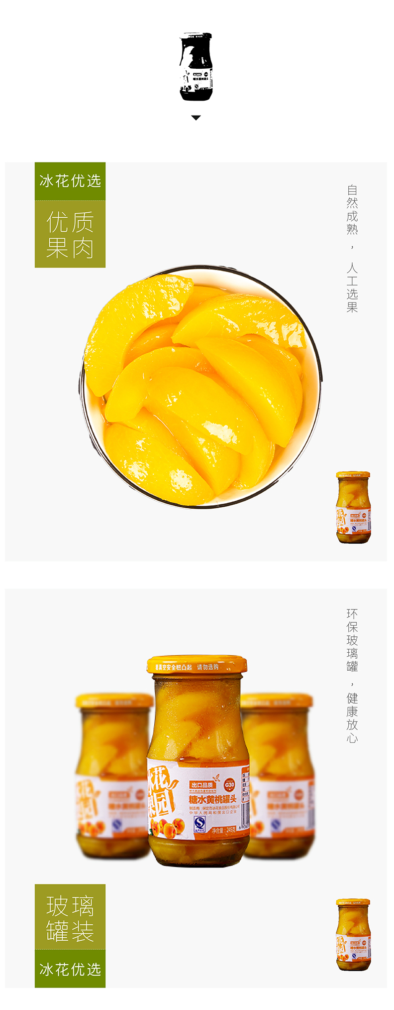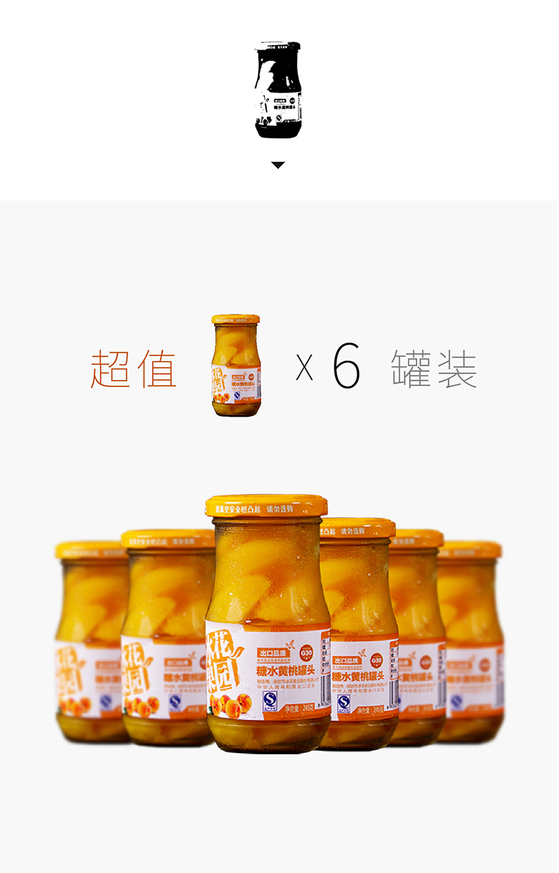 【冰花食品】冰花糖水黄桃罐头245g*6罐 送礼出口日本新鲜水果罐头玻璃瓶