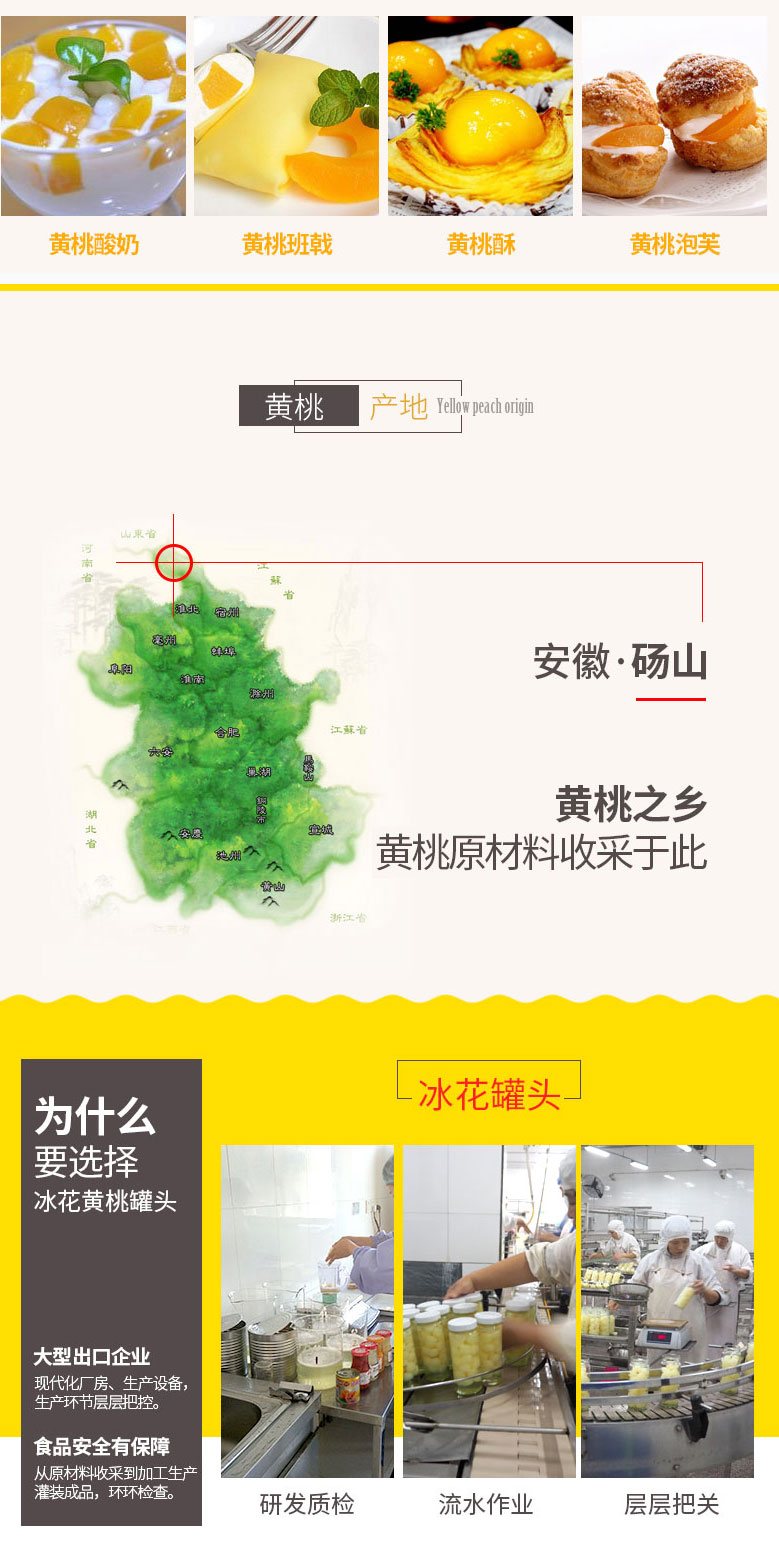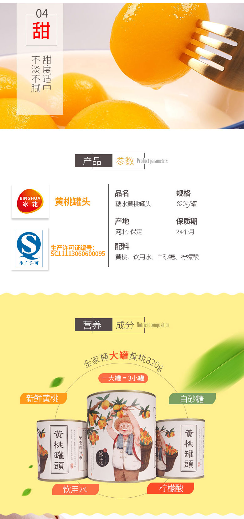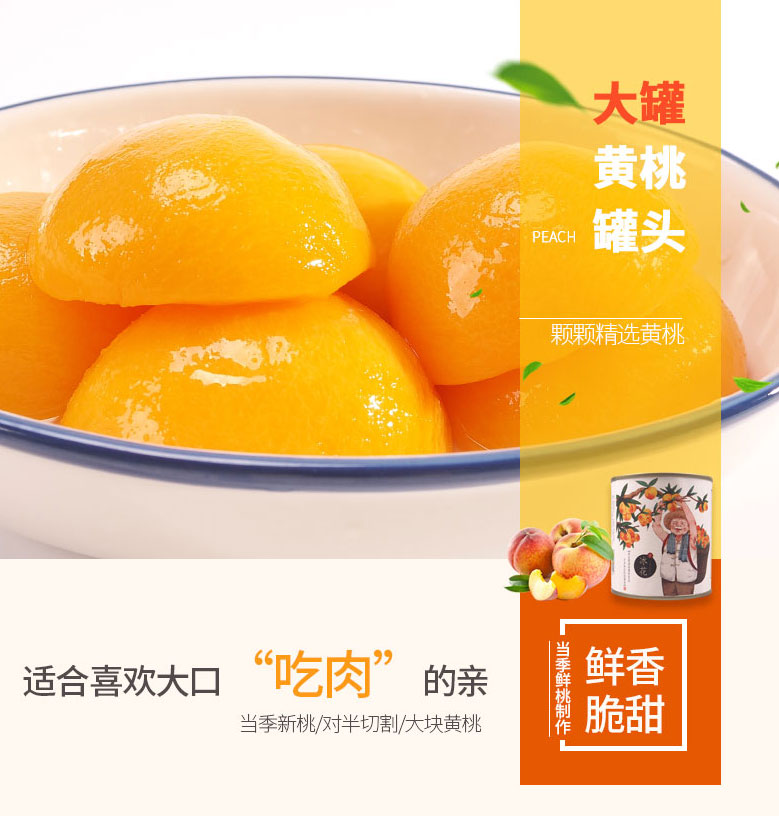 【冰花食品】发2桶 大桶黄桃罐头820g 新鲜砀山黄桃罐头大罐精美礼物 整箱批发